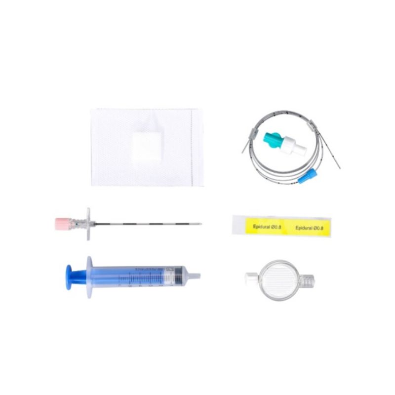 Эпидуральды анестезия жинағы эпидуральды инеден, эпидуральды катетерден (жалпы типті немесе күшейтілген типті), интродукциялық инеден, интродукциялық бағыттағыштан, катетер қосқышынан, сұйықтық сүзгіден және төзімділігі төмен шприцтен тұрады. Ол эпидуральды пункция үшін және эпидуральды анестезия кезінде эпидуральды кеңістікке сұйық препараттарды енгізу үшін қолданылады.
