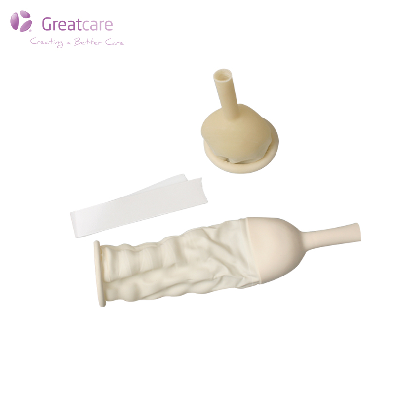 Greatcare Latex еркек сыртқы катетері табиғи медициналық латекстен жасалған. Сұрыпталған қақпақтың дизайны дренаждық жүйенің бұралу мүмкіндігін және несеп ағынының бітелуін болдырмайды. Ешқандай ағып кету немесе шар шығуы мүмкін емес.